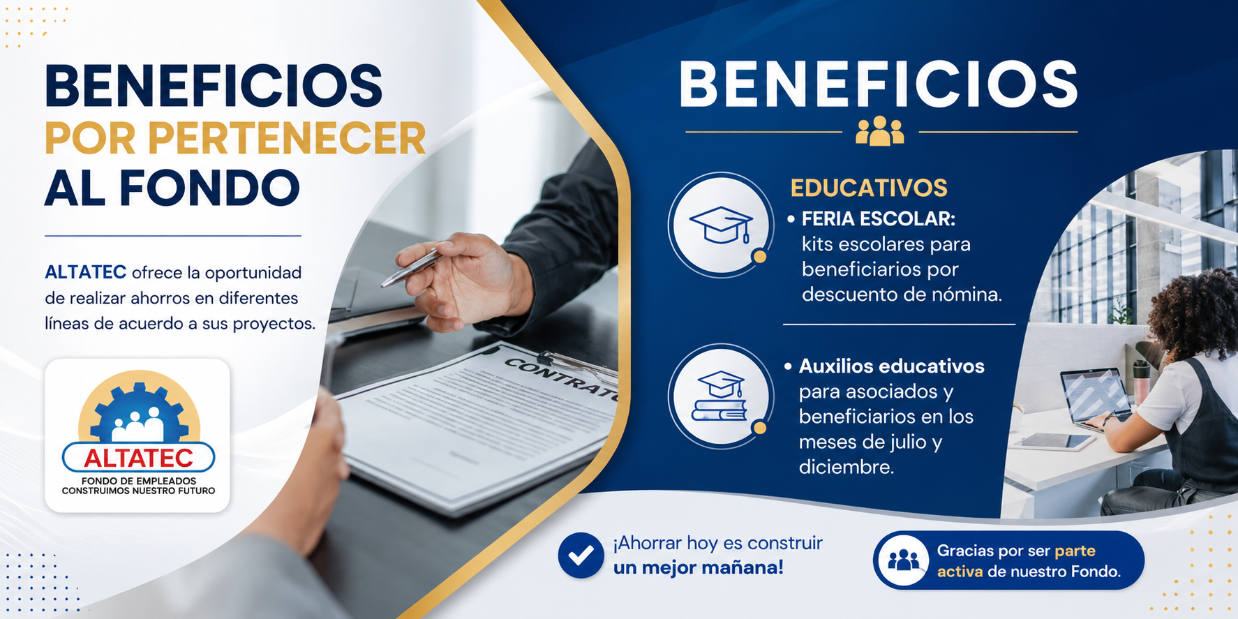 «Gracias al acompañamiento del fondo Altatec, nuestros colaboradores han podido dar solución a sus necesidades inmediatas con las diferentes líneas de crédito y ahorro por ellos ofrecidos; lo cual redunda en bienestar para el colaborador y su familia.»